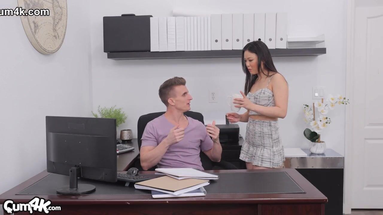 Лулу приходит на работу в свой выходной, чтобы помочь боссу. У неё давно огромный crush на него. Она случайно проливает напиток и использует момент, чтобы снять с него штаны и отсосать. В итоге она умоляет его наполнить её киску кремпаями.